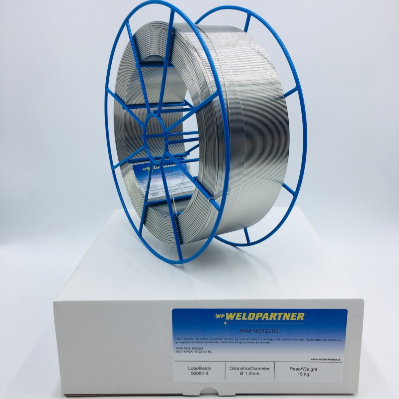 Hilo ER2209, de acero inoxidable Dúplex, para la soldadura y recargue de aceros similares. Resistente a la corrosión en medios clorados, ambientes marítimos y bajo grandes tensiones.