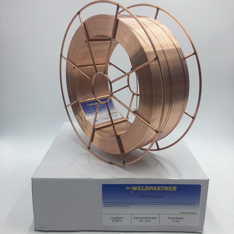 Hilo de soldadura de calidad excelente de acero al carbono Weldpartner ER70S-6 para la soldadura de aceros de baja aleación.