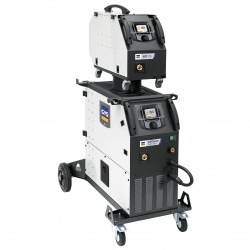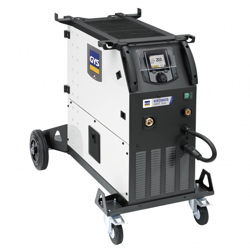 La máquina de soldar KRONOS 400T DUO es un equipo de soldadura inverter trifásico multiproceso. Gracias a su arquitectura modular, puede ser equipado con una devanadora independiente (opcional) para trabajar rápidamente con 2 tipos de hilo diferentes. Su avanzada tecnología garantiza unas excelentes características de arco para aplicaciones MIG/MAG exigentes. Las sinergias integradas facilitan considerablemente la parametrización y reducen las proyecciones durante la soldadura. Su pantalla de fácil acceso ofrece un control preciso de los parámetros de soldadura para garantizar una calidad óptima.